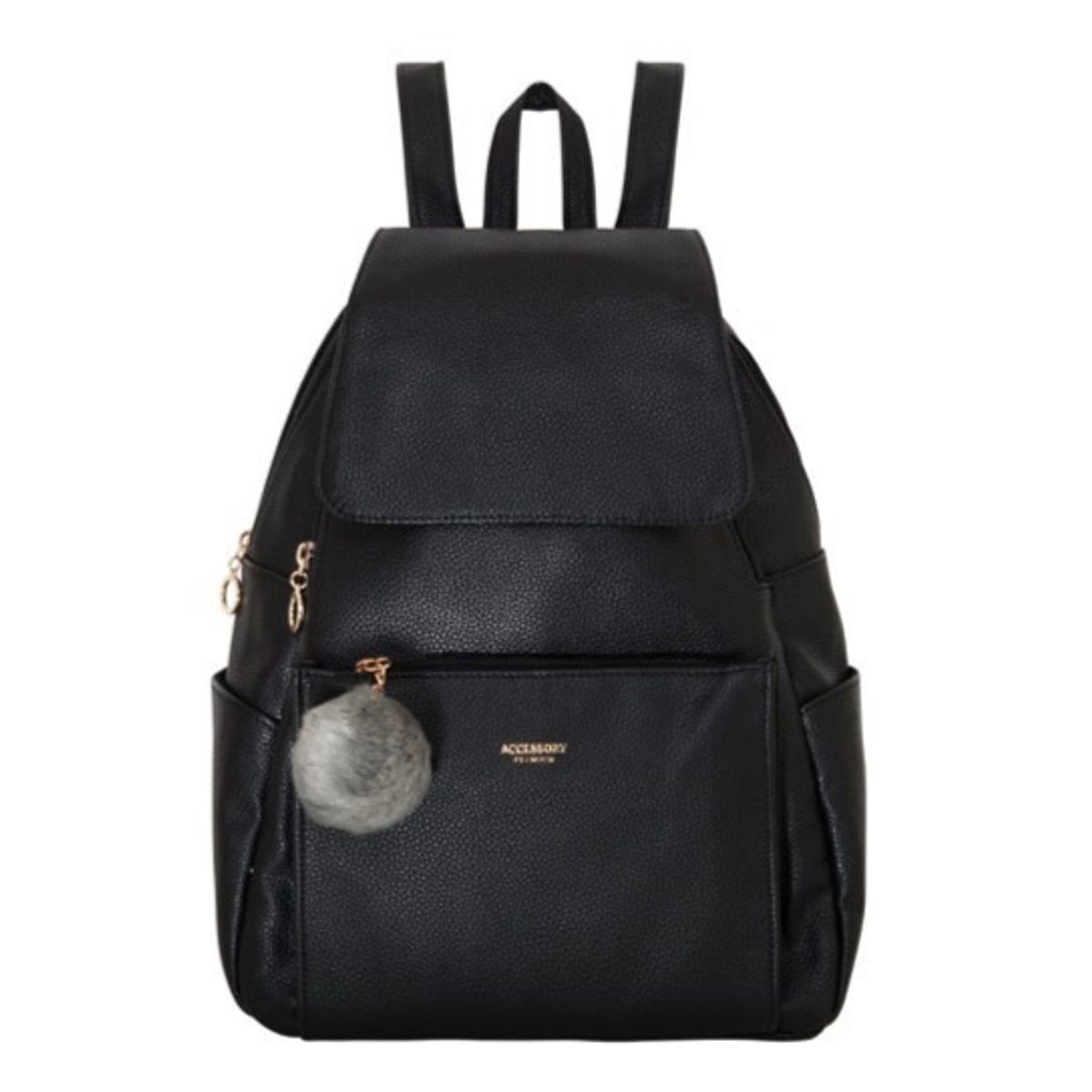 Mochila Feminina com Bolso e Pompom Preta