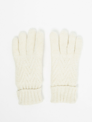 Cream Shimmer Cable Knit Gloves